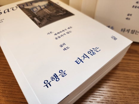 “느린 삶에서 어쩔 수 없이 나도 멈춰야만 했다. 이상하게도 그 불편함이 내 삶을 뒤돌아보게 만들었다. 나에게 필요한 건 새로운 유행이 아니라 다시 나답게 살아가는 감각이었다. 그 감각 속에서 나는 삶을 재구성하기 시작했다. 유행이 지나도 촌스럽지 않은 것들, 아니, 유행을 타지 않는 것들. 시간이 흘러도 내 안에서 여전히 자연스럽게 쌓여 있을 것들을 하나씩 모았다.” _ 본문에서